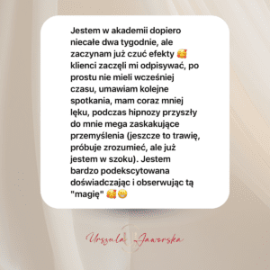 Polecam Hipnoterapię i Soul Body Fusion, które przeszłam u Uli.