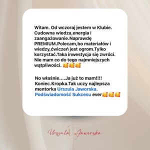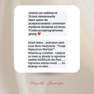 Chciałabym przekazać innym, że nie ma nad czym się zastanawiać i kupić to szkolenie (im szybciej tym lepiej :)) a w połączeniu z medytacjami z “resetem” i chęcią zmiany życia oraz wytrwałością to sukces gwarantowany