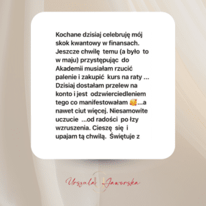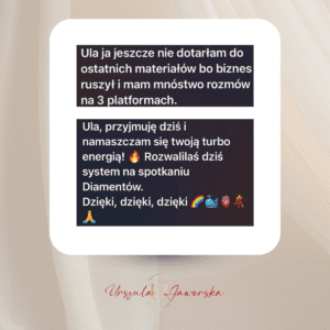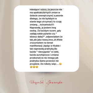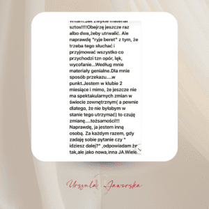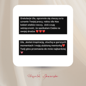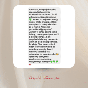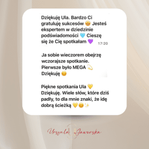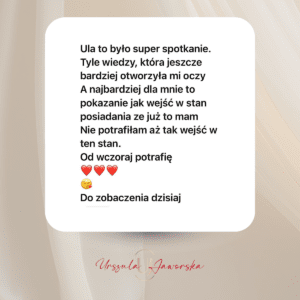 Dziękuję Ulu kochana ❤️ Od naszego spotkania dzieje się w mojej przestrzeni bardzo dużo….jednym słowem mogę opisać to tak, że zaczęłam się czuć bezpieczna